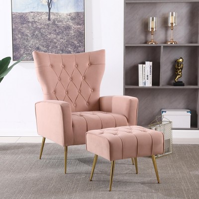 Velvet Modern Armchair with Ottoman, Comfy Cushion and Easy Assembly for Living Room & Bedroom
