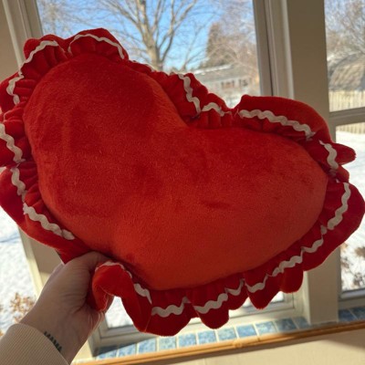 Velvet Ruffle Heart Kids' Novelty Plush Pillow Red - Pillowfort™