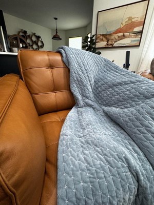 [This review was collected as part of a promotion.] Love how versatile this quilt is! It’s really soft but doesn’t over heat you. It’s got the soft texture with the stitching on the outside and simple liner on the underside which I think helps with temperature regulation. It’s a beautiful quilt on a bed or for lounging in a chair!