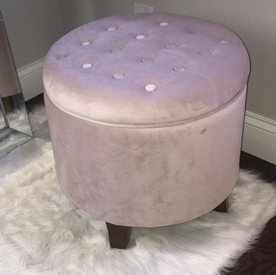 HomePop Velvet Tufted Round Storage Ottoman Pink Blush: Upholstered Footstool, Padded with Unhinged Lid