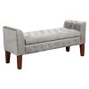 This elegant storage settee features all over button tufting for a luxurious look and feel. Upholstered in a soft and durable premium velvet fabric, this decorative bench has wood legs in a range of rich finishes. The hinged seat opens to reveal storage suitable for spare throws or pillows, books, magazines or toys. Use it as an end of bed bench, as an entryway bench or as extra seating and storage in a living room. This velvet bench is available in many rich colors and is part of a broader collection including accent chairs, tufted storage ottomans to match in the same great velvet fabric. Easy to assemble and maintain. Please note that fabric and wood colors may appear slightly different due to variations in lighting or screen settings.