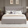 Velvet Upholstered Bed Frame with Storage Drawers, Tufted Headboard, No Box Spring Needed, King, Beige