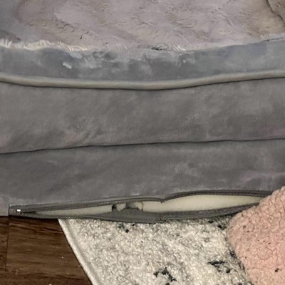The FurHaven Perfect Comfort Sofa-Style Pet Bed takes dog beds and cat beds to a new level. Designed with oversized, pillow-y bolsters that wrap around the sleep surface, this luxurious bed is perfect for dogs and cats who crave coziness. Velvet-soft bolsters are lined with plush faux fur embossed with a classic wave pattern. The bolsters feature a fluffy, insulating filling for your pet's comfort. The solid orthopedic foam base supports your pet's joints and pressure points, making this pet bed ideal for arthritic pets who have trouble getting comfortable. This full support solid slab orthopedic foam provides even more support and comfort. Give your companion the luxury they deserve with this orthopedic dog bed. This bed features a zippered, removable cover to keep the bed fresh and washed. 100% Polyester Cover is made in China. CertiPUR-US certified foam core is made in the USA.