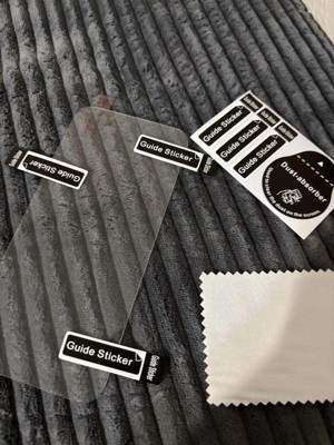- [Hassle Free Installation] Alignment frame included makes the screen protector installation process so much easier and accurately applied to the phone screen without any bubbles. With just one touch, the anti-static layer will adhere to your device’s screen.