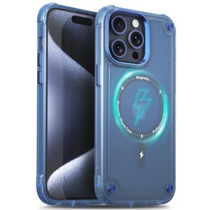 Vena For Apple iPhone 15 Pro Max Case Magsafe, Magnetic Ring Armor, Shockproof Translucent Back Slim Protective Phone Case, Translucent Blue