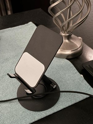 [This review was collected as part of a promotion.] Having a stand for my phone is essential for taking photos and videos of products for reviews. When I was offered this Cell Phone Stand for free in return for my honest opinion, I was happy to give it a try. I liked that the stand arrived very compact, making it portable and easy to take with me on the go. There was no assembly required, as it simply unfolded for use. The stand has nonslip grips on the bottom and a sizable round base, which makes it very stable. It is made from durable materials. The stand adjusts in both height and angle, although I feel it could offer a bit more range of adjustment than it currently does. For product photos and videos, it has been a helpful addition that allows me to work hands free. I also use it as a phone stand while my phone charges overnight, so it stays by my bedside. The cost, in my opinion, is a bit high for the level of functionality it provides. Overall, I like the quality, the compact design and how well it works for product photoshoots. I think the price is a little high for what it does, but I still appreciate the stand.