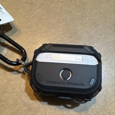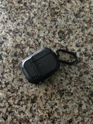 [This review was collected as part of a promotion.] I really like the design of this case - it has a sleek matte black finish and feels durable. It fits my AirPods Pro 2 perfectly. I especially appreciate the built-in charger plug, which helps keep dust and dirt out. Another great feature is the magnets on the back, allowing you to attach it to any magnetic surface. The included carabiner is also a nice touch. The only downside is that when you press the open button, the top piece doesn’t pop open automatically - you have to lift it manually. Overall, I’d say it’s a decent case, with a nice design and definitely will protect your airpods.