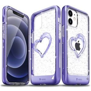 Vena vLove For Apple iPhone 12 mini Case Heart, Heart Shape Design (MagSafe Compatible) Dual Layer Slim Hybrid Bumper Case Cover, Purple