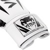 Ideal for training, these Venum Elite Hook and Loop Training Boxing Gloves provide optimum shock absorption with each punch, thanks to the triple density foam for maximum protection of the metacarpals. Its ventilation system coupled with its ergonomic design provides comfort during the fighting. Specific mesh panel placed under the fist for maximum absorption. Triple density foam design for maximum protection of the metacarpals. Reinforced palm for maximum absorption. Strengthened seams for a long-lasting quality. Premium Semi-Leather construction. 100% full attached thumb for a better injury prevention. Large hook and loop enclosure with elastic. Embossed Venum Logo (3-D to the touch) on each boxing cuff. Handmade in Thailand. Sold in pairs.