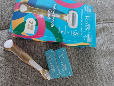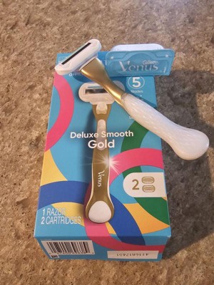 Venus Gillette deluxe smooth gold Olympic razor meets all my needs. The handle is a nice weight. I like the gold color of the handle. It comes with 2 razor head attachments so you don’t need to go get a refill pack right away. The razor heads attach easily and do a nice close shave. I personally like how they different types of razor attachments for different skin types to go with this razor. I personally got this one on sale which was a big reason I bought this one.