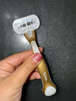 [This review was collected as part of a promotion.] The handle for the shaver was a little bit heavy. It’s a metal handle. I liked the gold on it. It was ok to hold and use. Venus shavers are a little bit big for me but did leave my skin smooth. It was overall ok for me.