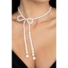 The Venus Pearl Bow Necklace exudes a feminine and flirty charm, featuring a sweet, updated lariat style bow made of rounded pearls. This necklace is a delightful blend of the current pearl trends mixed with sophistication and timeless beauty.