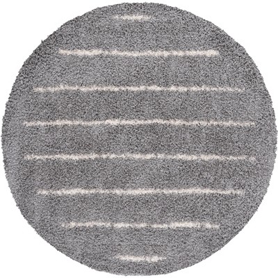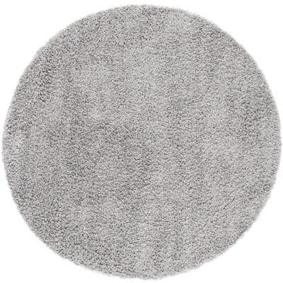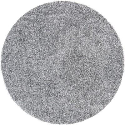 Introduce elegance into your living space with this exquisite grey round area rug, measuring 6 ft 7 inches by 6 ft 7 inches. Crafted in Egypt, it features a plush shag flokati style, adding softness and warmth to any room. The solid color design offers a versatile aesthetic that complements a variety of decor styles.