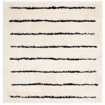 Venus Shag VNS603 Power Loomed Indoor Area Rug - Ivory/Black - 6'7"x6'7" - Safavieh