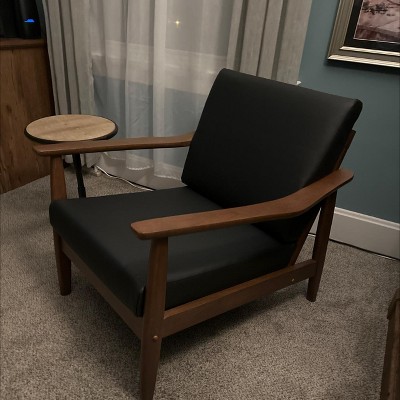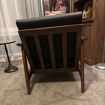 Venza Mid Century Modern Walnut Wood Faux Leather Lounge Chair Black - Baxton Studio: Indoor Armchair, Rubberwood Frame
