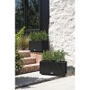 Low and long, the Veradek Long Box planter will add definition to outdoor spaces like the patio, balcony or garden. Complemented by its modern appearance, the Long Box is thoughtfully curated with functionality in mind—a double-walled design insulates your favorite plants and minimizes soil use while pre-drilled drainage holes help prevent overwatering. This sturdy yet lightweight rectangular planter is proudly crafted in Canada from high-grade recycled plastic, making it resistant to cracks, fading and UV and allowing it to withstand extreme temperatures ranging from -20 to +120 degrees. With the perfect balance of design, structure and purpose, the Long Box will add the finishing touches needed to transform a house into a home.