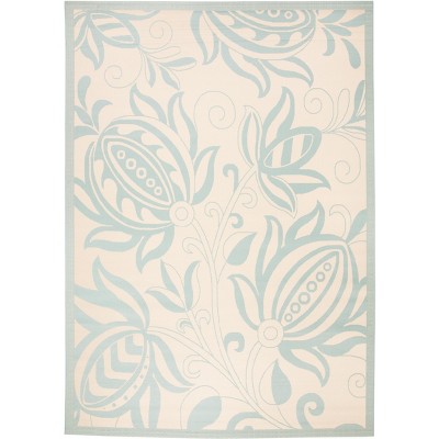 Veranda VER003 Power Loomed Indoor/Outdoor Area Rug - Cream/Aqua - 6'7"x9'6" - Safavieh.