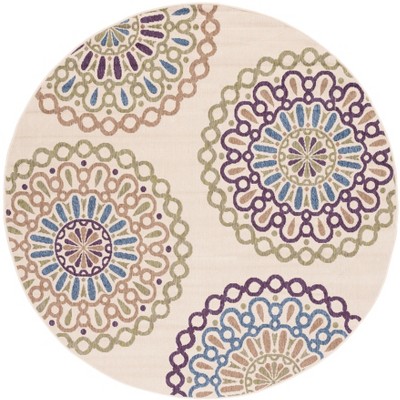 Veranda VER089 Power Loomed Indoor/Outdoor Area Rug - Cream/Green - 6'7" Round - Safavieh