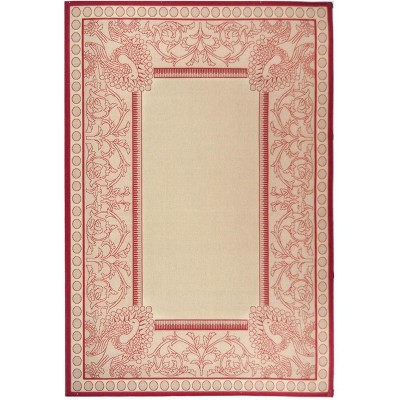 Veranda VER089 Power Loomed Indoor/Outdoor Area Rug - Creme/Red - 6'7"x9'6" - Safavieh