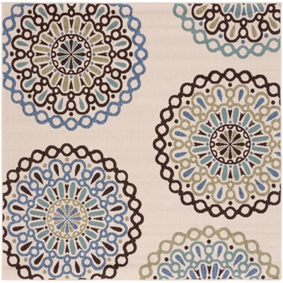 Veranda VER091 Power Loomed Indoor/Outdoor Area Rug - Cream/Blue - 6'7"x6'7" - Safavieh
