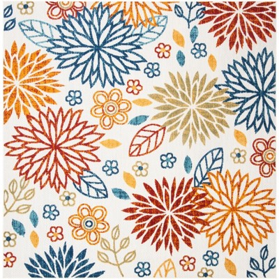 Veranda VER092 Power Loomed Indoor/Outdoor Accent Rug - Creme/Red - 3'x3' - Safavieh