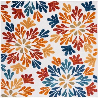 Veranda VER092 Power Loomed Indoor/Outdoor Area Rug - Creme/Red - 5'3"x5'3" - Safavieh