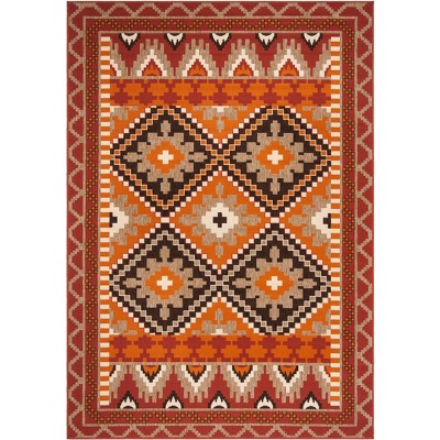 Veranda VER095 Power Loomed Indoor/Outdoor Area Rug - Red/Chocolate - 5'3"x7'7" - Safavieh