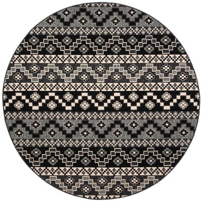 Veranda VER096 Power Loomed Indoor/Outdoor Accent Rug - Black/Beige - 3' Round - Safavieh