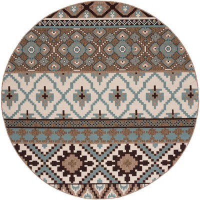 Veranda VER096 Power Loomed Indoor/Outdoor Area Rug - Creme/Brown - 6'7" Round - Safavieh