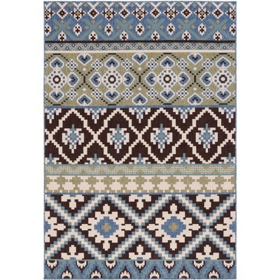 Veranda VER097 Power Loomed Indoor/Outdoor Runner Rug - Chocolate/Blue - 2'3"x8' - Safavieh