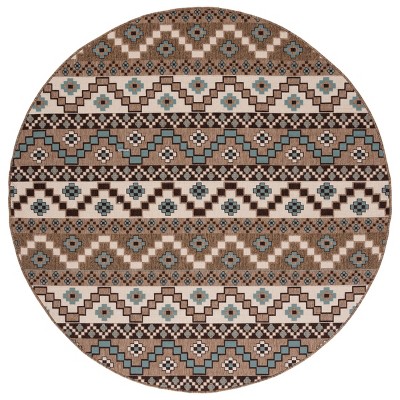 Veranda VER097 Power Loomed Indoor/Outdoor Area Rug - Creme/Brown - 6'7" Round - Safavieh