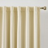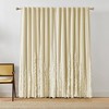 Decorate your home with the rich textures of the Verdant Path Velvet Blackout Curtains. Inspired by nature's beauty, these earth toned window panels were designed to bring organic movement and depth to your home. The luxurious velvet panel is embellished with sheer ruffles flowing all the way down. The 100% blackout lining ensures maximum privacy, energy efficiency, complete sunlight blocking, noise reduction, and temperature control. Featuring corner weights to enhance insulation and shape. Sold as 2 panels, each measuring 50" W x 84" L. Easy to install with a 3" back tab rod pocket, to slide onto a curtain rod or by using clip rings (not included). Dry clean only for best results.