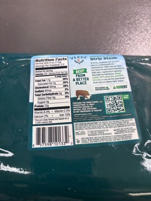 [This review was collected as part of a promotion.] Verde Farms’ Organic Grass-Fed Strip Steak is a premium cut known for its rich flavor and sustainable sourcing. Sourced from cattle that are 100% grass-fed and grass-finished, these steaks are USDA Certified Organic, free from antibiotics, added hormones, and GMOs. The cattle are raised on open pastures, supporting regenerative farming practices verified by the Land to Market program .