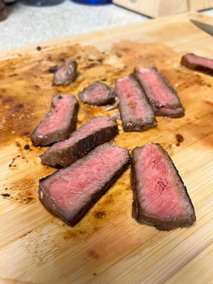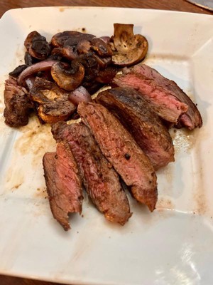 [This review was collected as part of a promotion.] This was really good. I am not a huge steak eater but really liked it. Steak came out juicy and very flavorful, nothing tough or gristly. I used the 3-3-2-2 method for cooking it in a cast-iron pan and that worked well.
