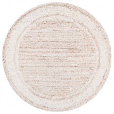The rug features a sophisticated beige and ivory color palette, with a dynamic, layered stripes pattern that adds depth and visual interest to your floors. The design emulates the natural variations found in stone or wood textures, offering an organic aesthetic that promotes a serene and inviting atmosphere.