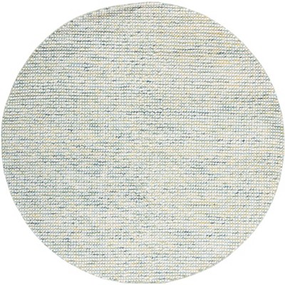 Transform your living space with this elegant round area rug from India. Measuring 6 feet by 6 feet, it is crafted from soft wool, offering a cozy feel underfoot. The blend of ivory and light blue colors enhances any interior with a touch of subtle sophistication. This hand woven piece features a contemporary style, perfectly accentuated by its geometric pattern. With a plush pile height of three eighths inch, it combines comfort with style, making it an ideal addition to living rooms, bedrooms, or any area in need of a focal point. Embrace the artistry and craftsmanship of this charming rug and let it inspire your home decor journey.
