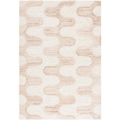 A: The rug's calming beige and ivory palette makes it versatile for various decor styles.