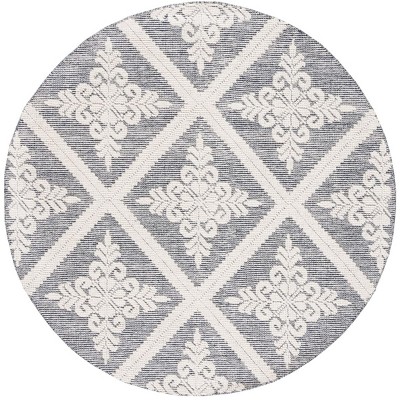 Transform your space with this round area rug, designed to bring a splash of serenity to any room. With a size of 6 feet by 6 feet, its blue and grey solid tonal style creates a calming oasis. Crafted with a blend of 60 percent wool, 20 percent polyester, and 20 percent cotton, this hand loomed piece from India offers a delightful texture. The 5/8 inch height adds an inviting layer underfoot while maintaining practicality in high traffic areas. Whether placed under a dining table or as a focal point in the living room, this rug enhances your decor with its understated elegance and solid color pattern. Embrace the art of subtle refinement in your home.