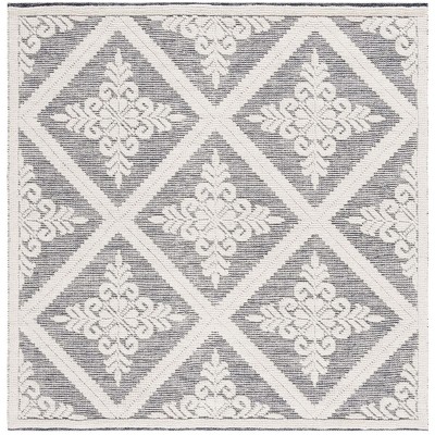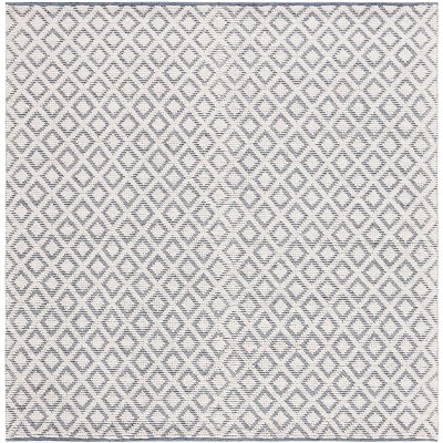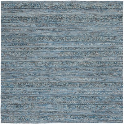 Transform your living space with this stunning area rug. Measuring 6 feet by 6 feet, this square rug provides an inviting foundation in any room. The calming blend of blue and grey offers a versatile palette that complements a range of decor styles. Expertly crafted using hand loomed techniques, this rug showcases a solid tonal style that adds subtle depth to your floors.