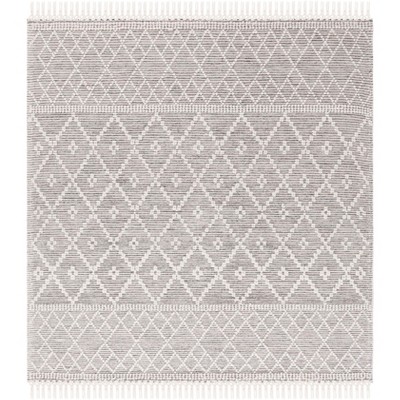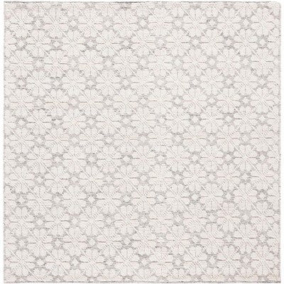 Elevate your space with this beautifully crafted area rug. Measuring 6 feet by 6 feet, this square rug in soft ivory and grey offers a harmonious blend of style and comfort. Hand loomed with care, it combines 60 percent wool, 20 percent polyester, and 20 percent cotton to create a masterpiece for your floor.