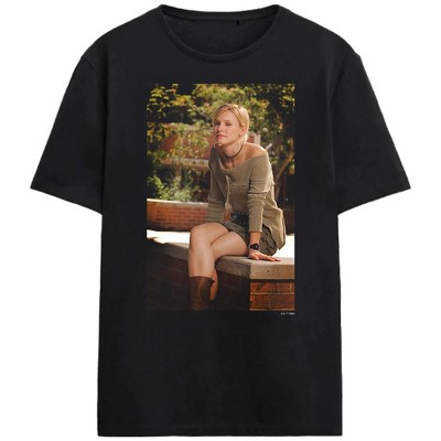 Channel your inner detective with this adult black Veronica Mars crew neck short sleeve t-shirt. Featuring a screenshot of Veronica the Sleuth leaning against a white rail on the beach, this shirt captures the essence of the sharp and fearless character. Made from soft cotton, it's perfect for casual wear. Machine wash this graphic tee on cold with like colors and tumble dry on low heat for effortless care.