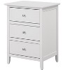 Size: 25"H X 19"W X 15"D fits small spacesSmooth surface ensures quick cleaning and upkeepAssembly required, adding a personal touchBright white finish complements various stylesThree drawers keep essential items organized