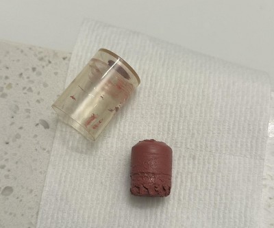 Product had broken off into the lid. Color was chalky looking. Target refunded and made it right.