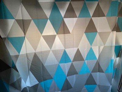 [This review was collected as part of a promotion.] I just bought my first house and was looking for a shower curtain in the grey and blue colors. When I saw this shower curtain it was perfect with the colors that I wanted and a nice geographic design. The design is not your typical design but thats what I like about this shower curtain. It seems to be made of good quality and I feel it should last for quite a while. Happy with my shower curtain and would recommend this.
