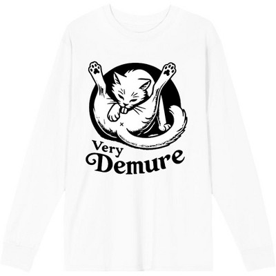 - Custom Design: Showcases a charming cat graphic alongside the witty phrase "Very Demure," adding a playful touch to your outfit