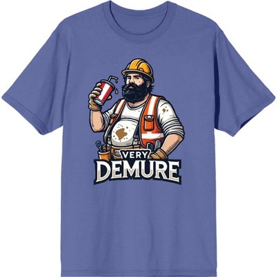 Celebrate the spirit of hard work with this crew neck short sleeve apparel featuring a playful image of a construction worker holding a drink. Below the graphic, bold white letters declare "Very Demure," adding a touch of humor to your wardrobe. Made from high-quality materials, this shirt combines comfort and durability, making it ideal for casual outings or laid-back gatherings. With easy care instructions, it's a practical choice for anyone looking to make a stylish statement. Just machine wash it on cold with like colors and tumble dry on low heat.