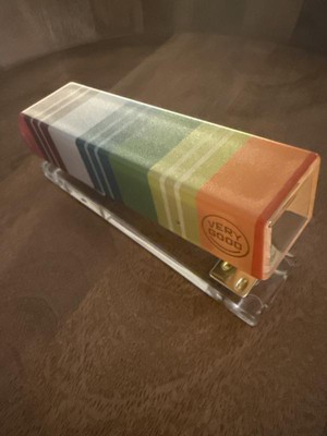 Add a pop of color to your desk with this Striped Stapler with Purple Staples from Tabitha Brown for Target. This stapler features a multicolor striped pattern along with "Very Good" text for a vibrant, positive touch. Plus, the stapler comes with purple staples to add a pop of color to your notes and documents.