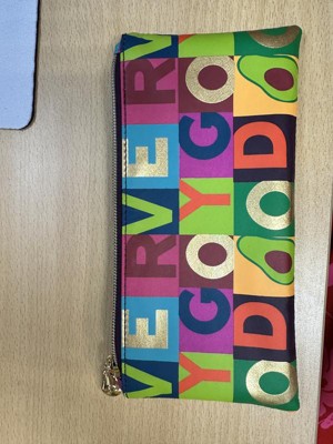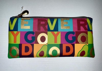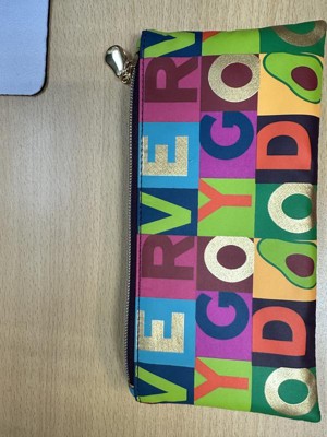 Add a fresh, colorful style to your accessories collection with the Very Good Zippered Pouch with Avocado Pull from Tabitha Brown for Target. This pouch is covered with a colorful checkered pattern bearing the message "Very Good" and images of avocado for a fun look. Made of fabric, this printed pouch has a zipper closure with an avocado pull to help keep your pens, pencils, and other accessories nicely contained.