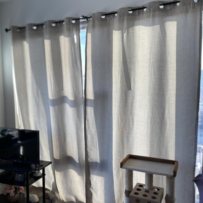 Not 100% linen as the description states. Curtain label reads 4% linen. Also, the color is a dark charcoal grey. Much darker than the online photo.
