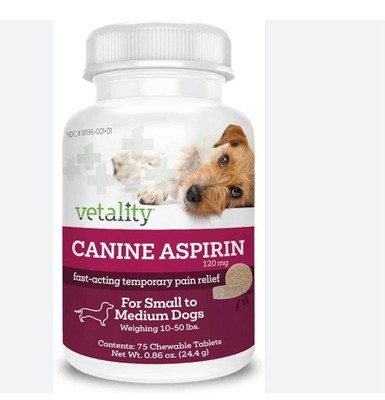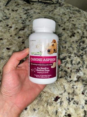 [This review was collected as part of a promotion.] I received this Vetality canine aspirin for my sweet little old man and I used it one time to relieve pain in his rear leg. It did seem to help him feel better. Soon afterward he was diagnosed with liver disease, so I haven't given it to him again. I will use on our 1 1/2 year old Golden Retriever if he should need it.